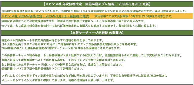 為替サーチャージを反映した最新取付/通販コース価格表は以下リンクをクリックしてご覧下さい。